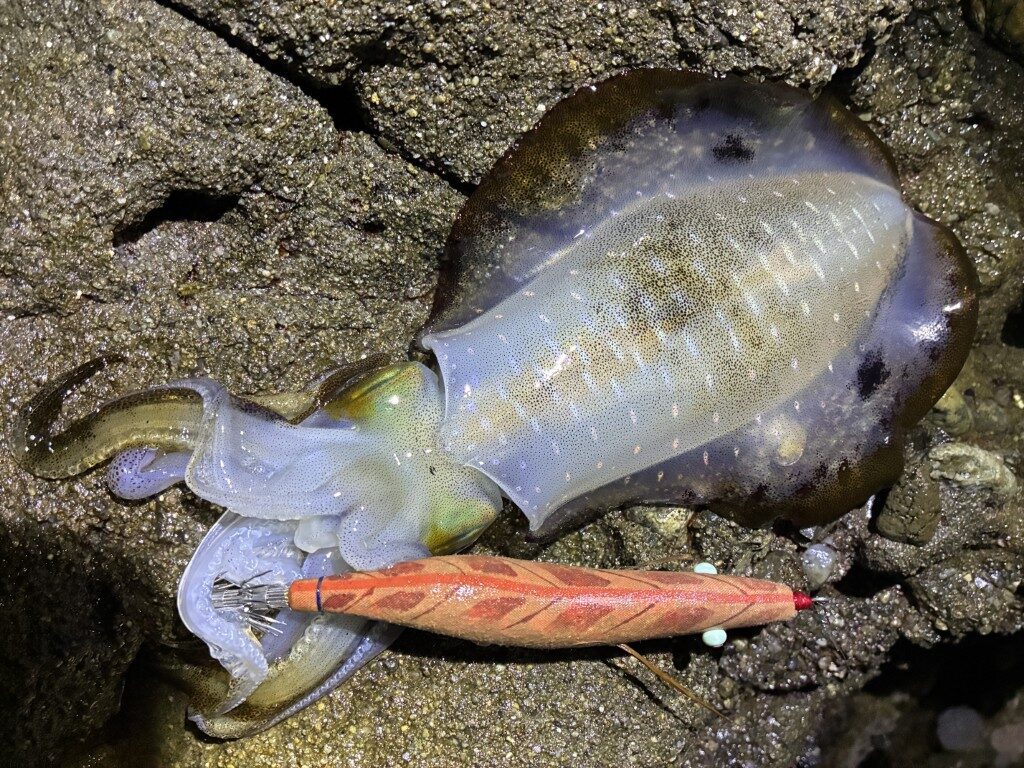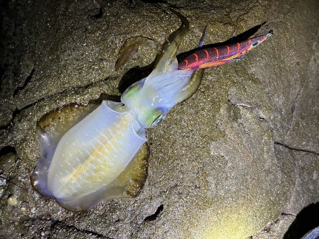 たまたま群れが入ってきたタイミングだったのか?ただ巻きが良かったのか?その後も3杯ほど追加し、ここまでの半分以上のアオリイカを餌木猿でGET!